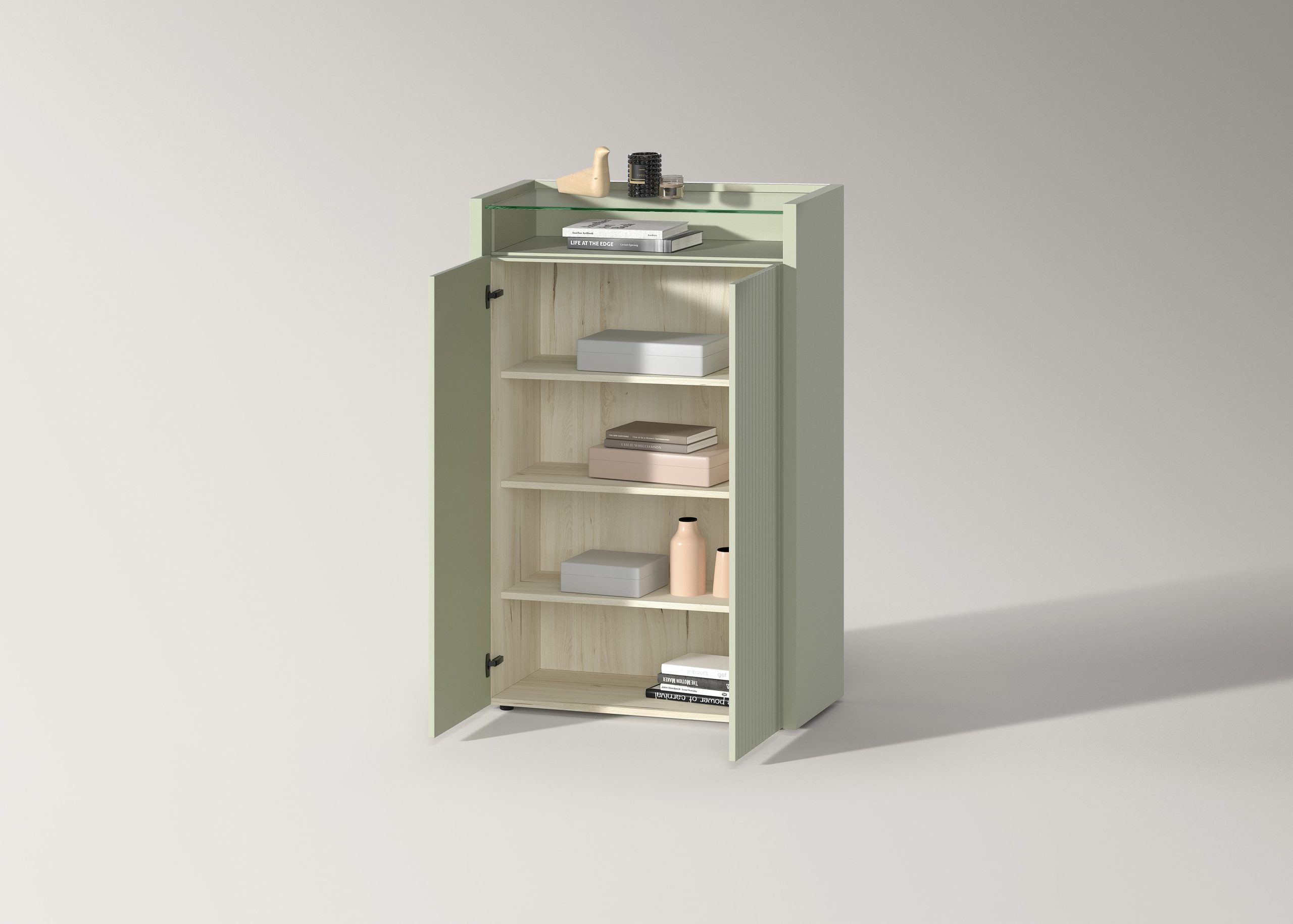 - Aparador 2 puertas batientes con franjas 90 x 128 con niveladores.