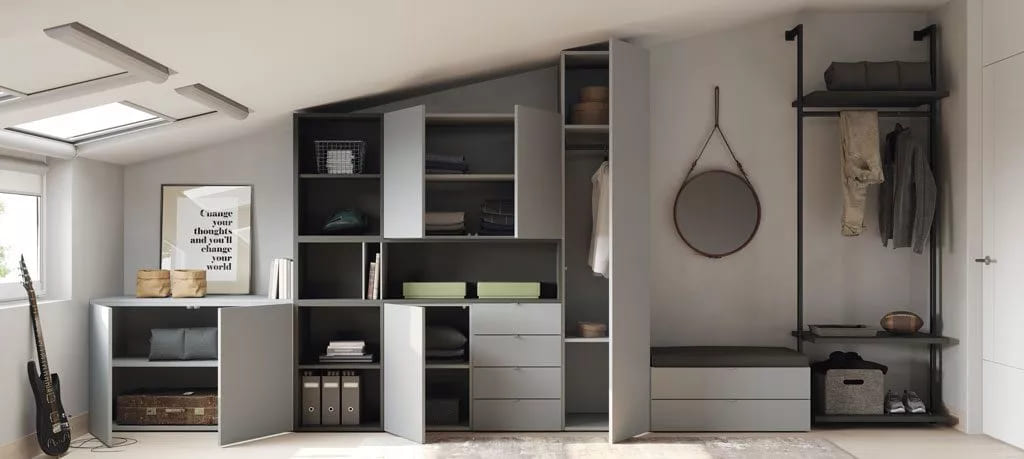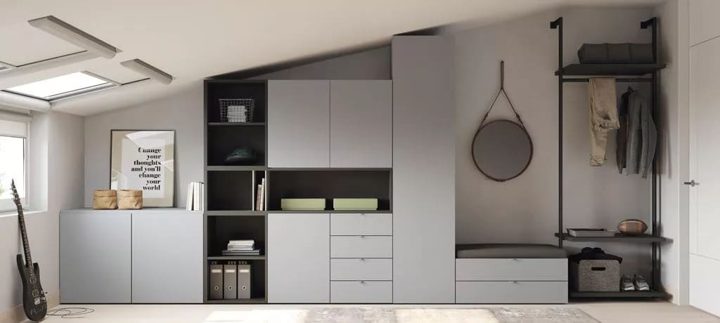 ¿Dispones de altillo? En general, son espacios con una configuración complicada. Aún así, la versatilidad del programa te permite construir un conjunto para aprovechar cada centímetro.