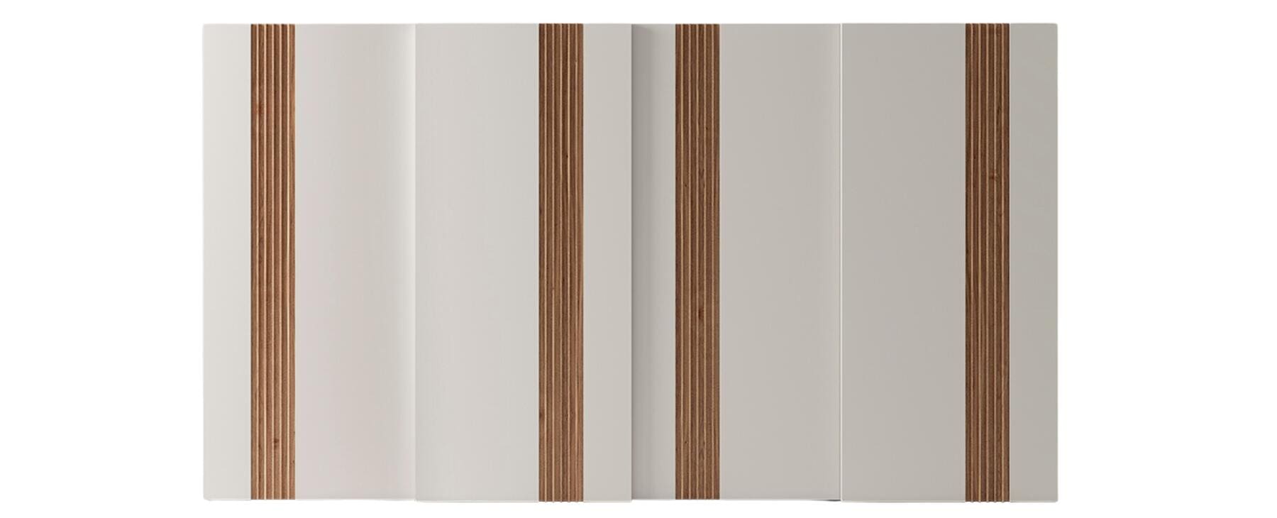 En el armario de puertas correderas TOTEM la puerta y el tirador se unen para formar cinco líneas y seis espacios aportando fuerza, caracter y verticalidad.