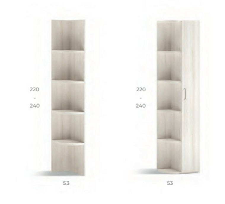 • Armarios con 4 repisas exteriores (terminales y rinconeras) y 6 repisas interiores (únicamente terminales).