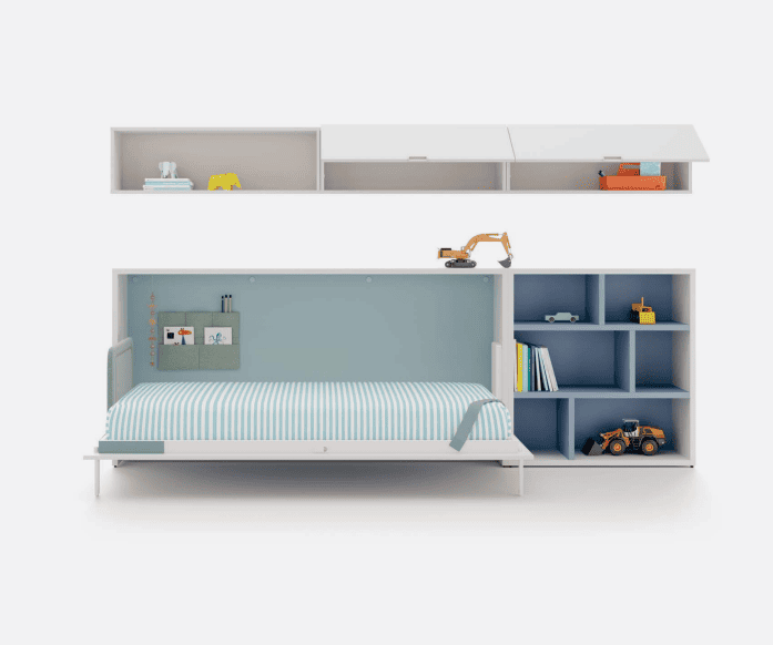Con estos muebles vas a poder aprovechar mejor la habitación, con la cama cerrada los niños tendrán más espacio para poder jugar, donde hemos incorporado unos complementos interiores que te harán la vida más cómoda.