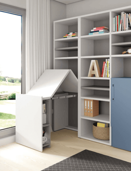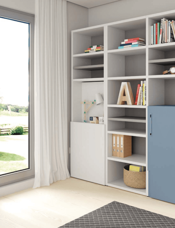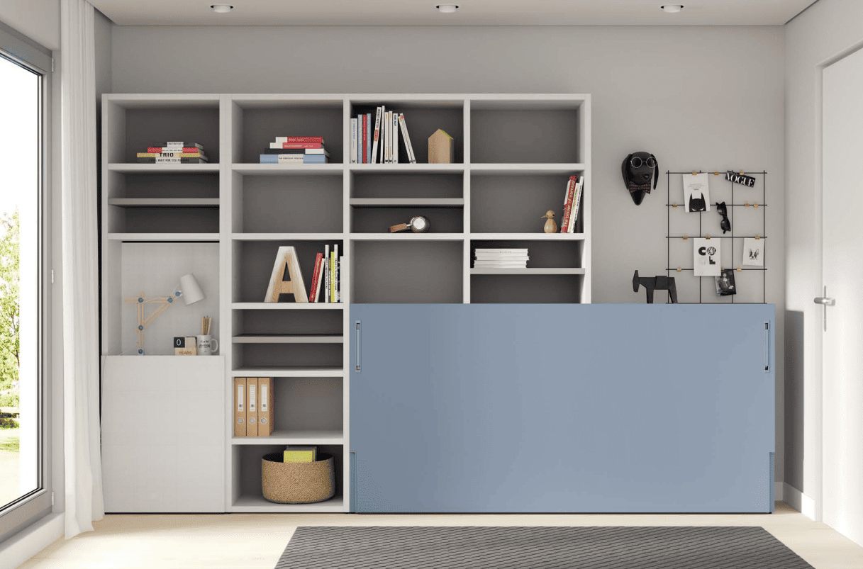 Con estos muebles vas a poder aprovechar mejor la habitación, con la cama cerrada los niños tendrán más espacio para poder jugar, donde hemos incorporado unos complementos interiores que te harán la vida más cómoda.
