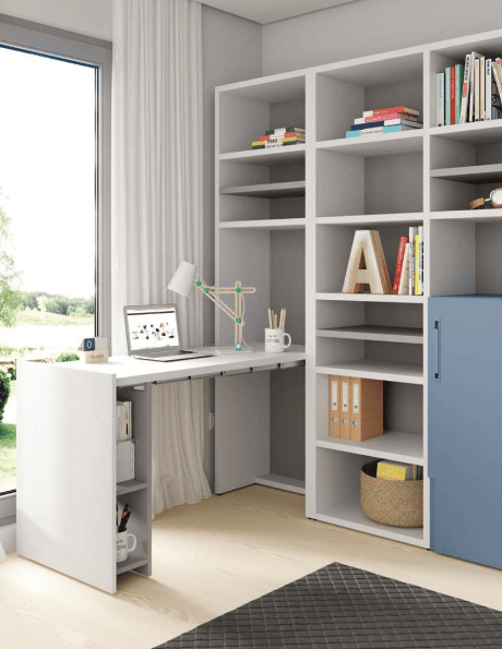 Tener una mesa integrada en tan poco espacio es una opción a la que no puedes renunciar. Las mesas empotradas y extensibles te ayudan a ahorrar espacio para realizar otras actividades.