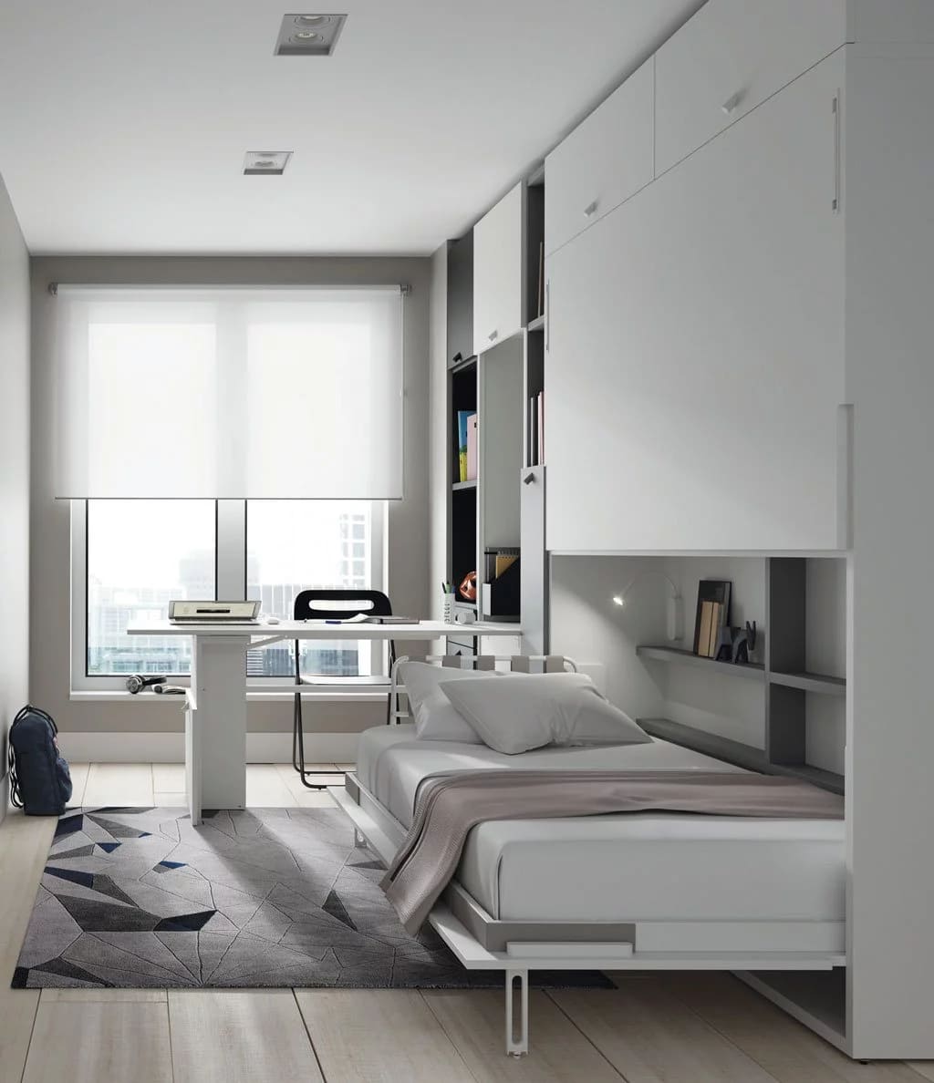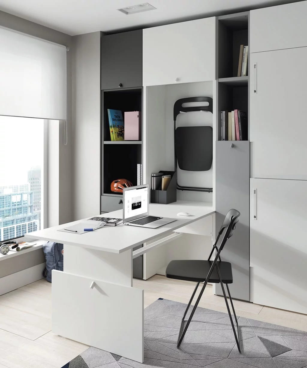 Un diseño inteligente para espacios estrechos y alargados. Si mantienes cerradas las literas y la zona de estudio, disfrutarás de un espacio más despejado.