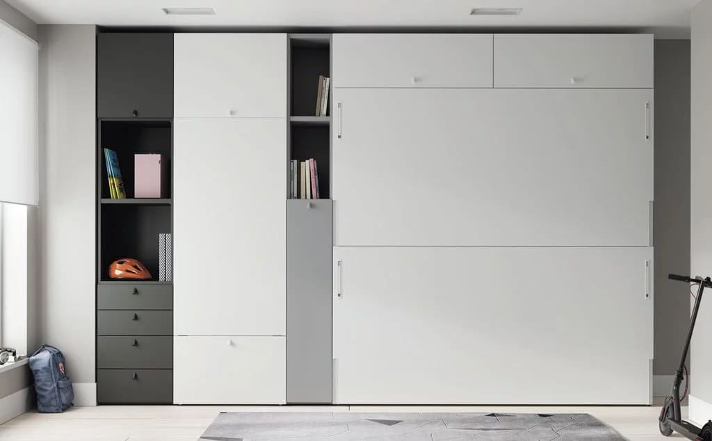Con estos muebles vas a poder aprovechar mejor la habitación, con la cama cerrada los niños tendrán más espacio para poder jugar, donde hemos incorporado unos complementos interiores que te harán la vida más cómoda.