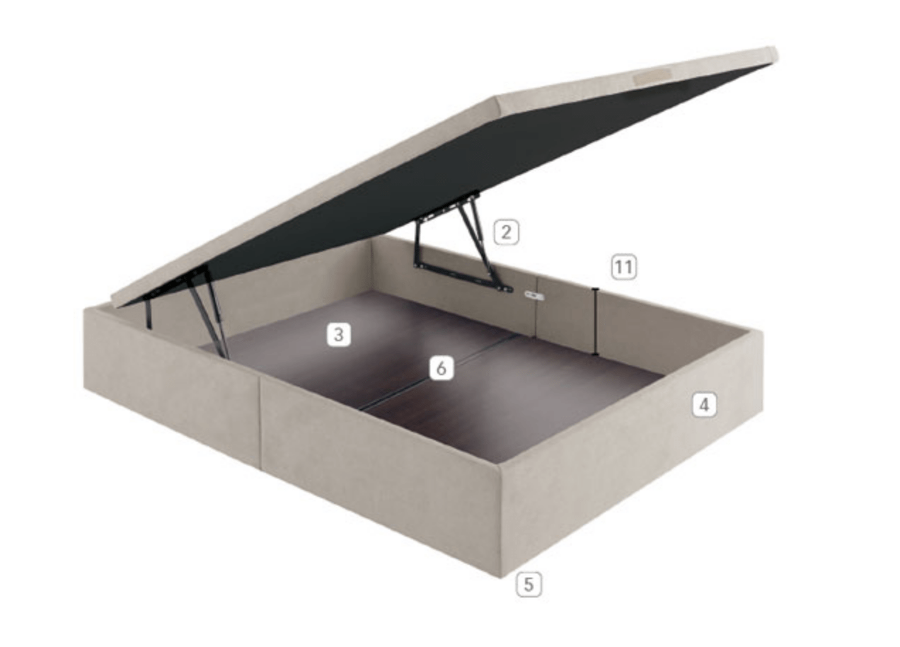 Nuestro canapé 2500 es un modelo tapizado que presenta una excelente calidad y terminación. La parte interior de la tapa esta tapizada en tejido 3D y su contorno a juego del cajón. Tiene una altura total de ±38 cm.
