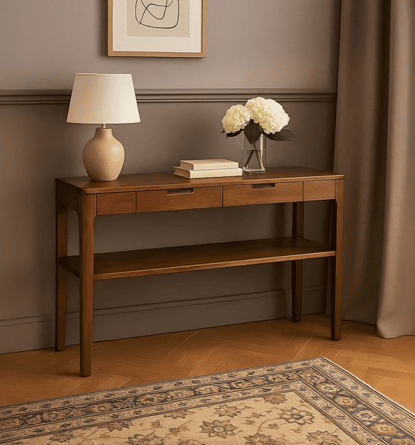 Colección de muebles inspirada en la elegancia y el carácter natural de la madera. Compuesta por piezas fabricadas en madera de caoba con acabado cálido y sofisticado.