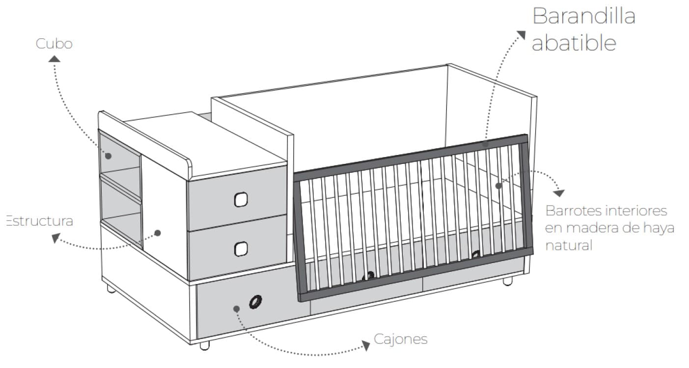 - Cama de 140 x 70 y cama de 190 x 90.