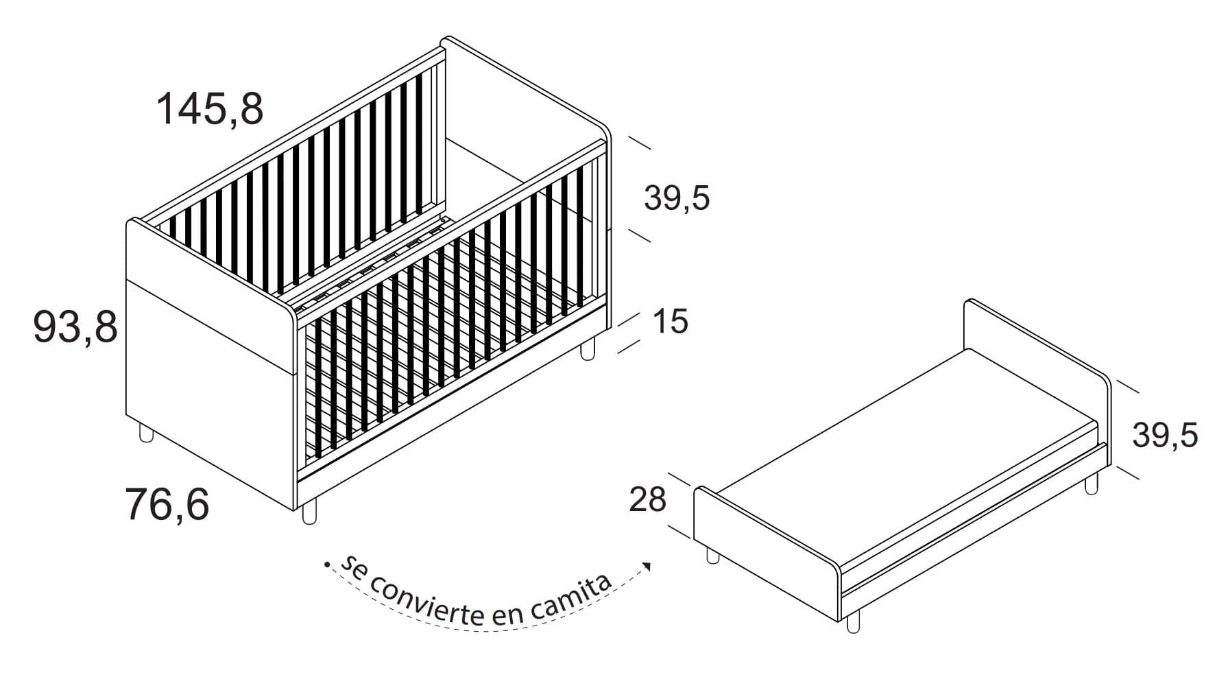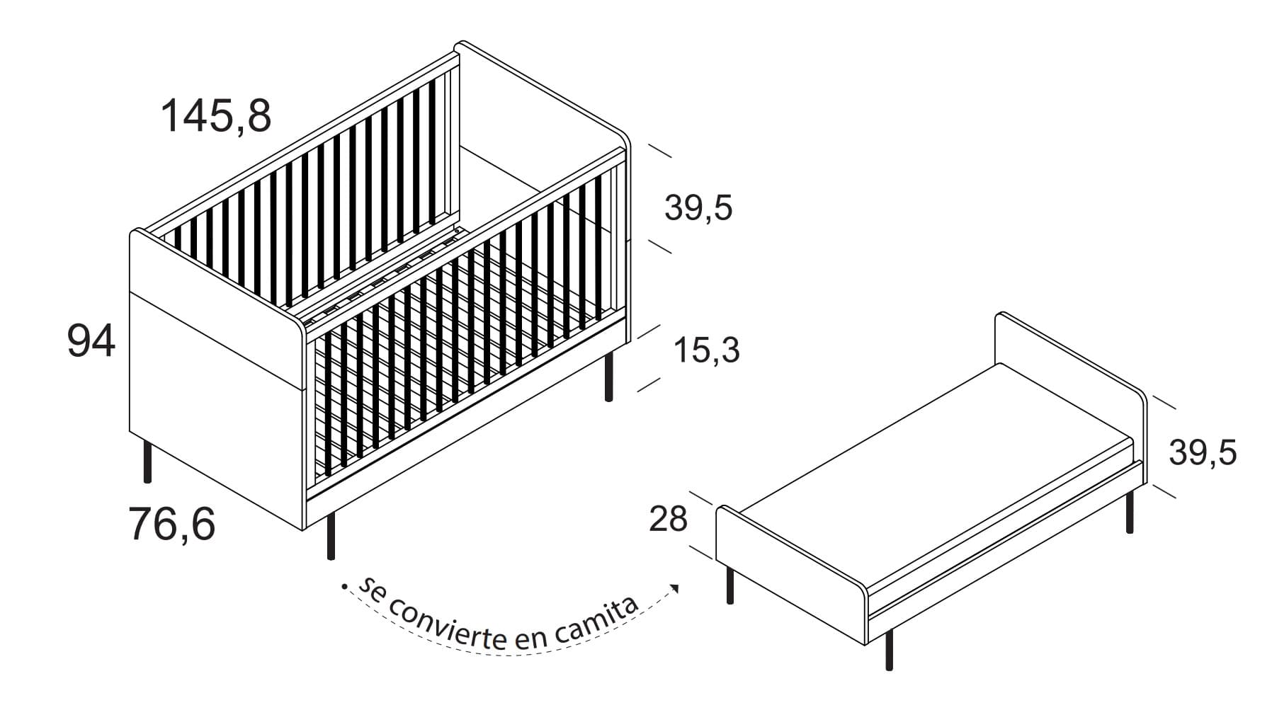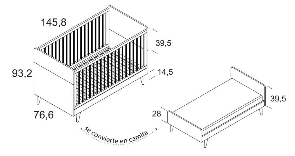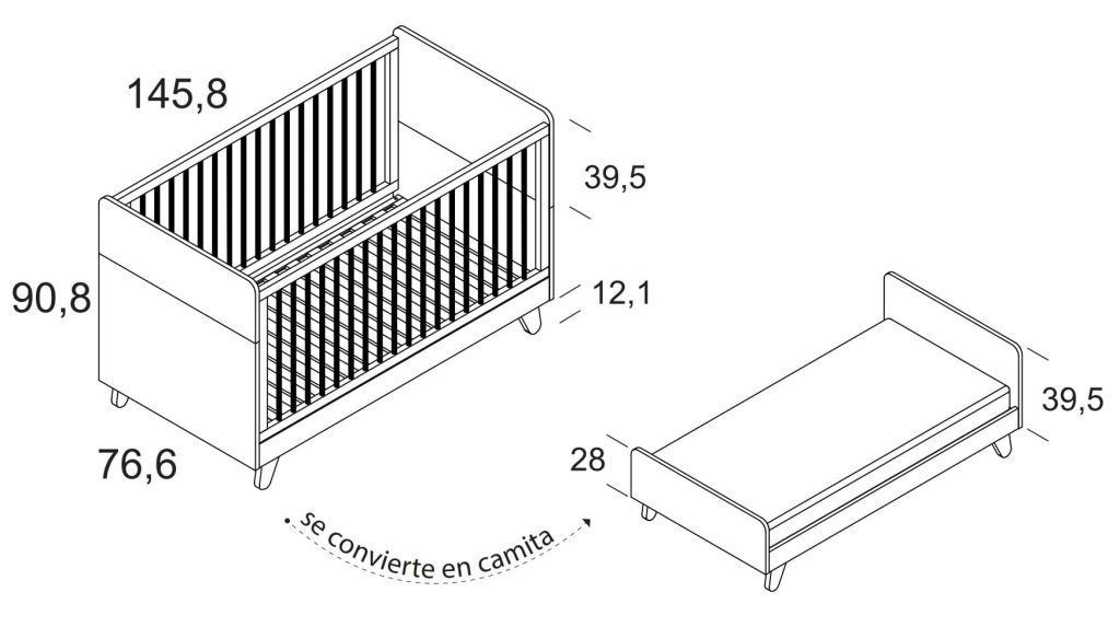 - Para cunas de 140cm x 70cm , convertibles a camita.