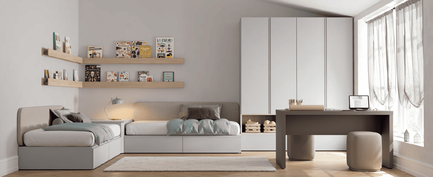 Cubos es un sistema adaptable a cualquier espacio y necesidad. Formado por un conjunto de piezas que permiten sumarse a lo ancho y alto. De esta forma podrás crear una cama, una estantería, un armario, un escritorio… con la creatividad y libertad que el programa Cubos te da.