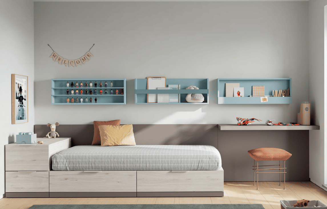 Cubos es un sistema adaptable a cualquier espacio y necesidad. Formado por un conjunto de piezas que permiten sumarse a lo ancho y alto. De esta forma podrás crear una cama, una estantería, un armario, un escritorio… con la creatividad y libertad que el programa Cubos te da.