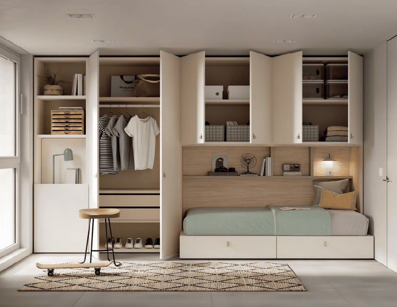 Ambientes perfectamente integrados y optimizados para dar cabida a todo lo necesario en el día a día. Espacios que invitan a disfrutar de un buen descanso, del mejor orden y de los ratos de estudio y diversión.
