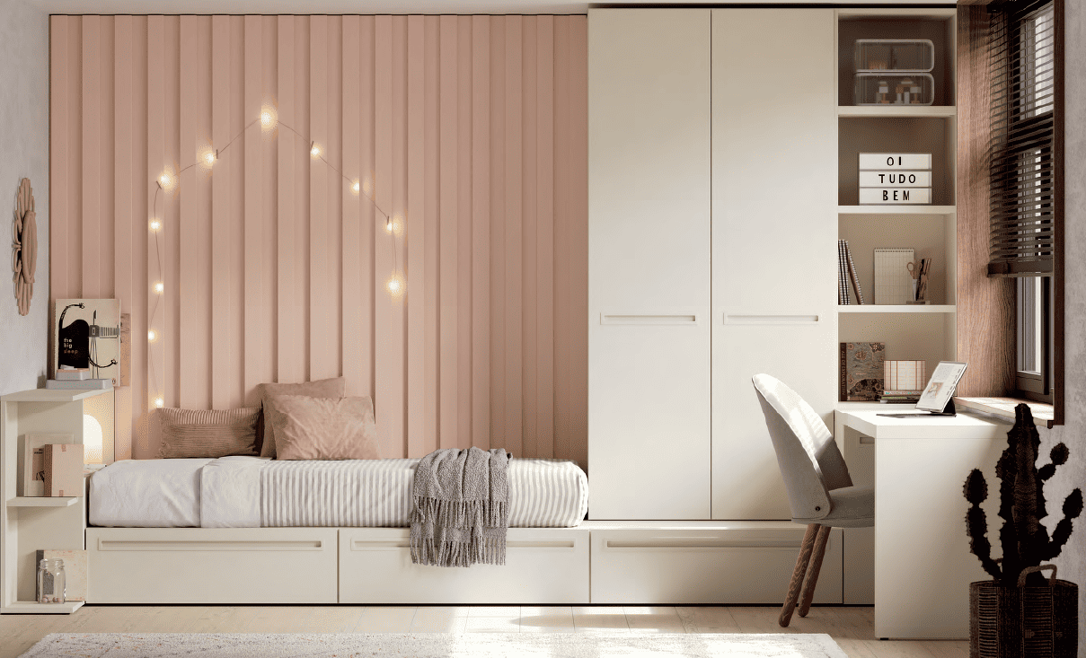 Cubos es un sistema adaptable a cualquier espacio y necesidad. Formado por un conjunto de piezas que permiten sumarse a lo ancho y alto. De esta forma podrás crear una cama, una estantería, un armario, un escritorio… con la creatividad y libertad que el programa Cubos te da.