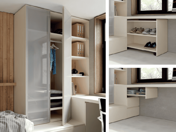 Cubos es un sistema adaptable a cualquier espacio y necesidad. Formado por un conjunto de piezas que permiten sumarse a lo ancho y alto. De esta forma podrás crear una cama, una estantería, un armario, un escritorio… con la creatividad y libertad que el programa Cubos te da.