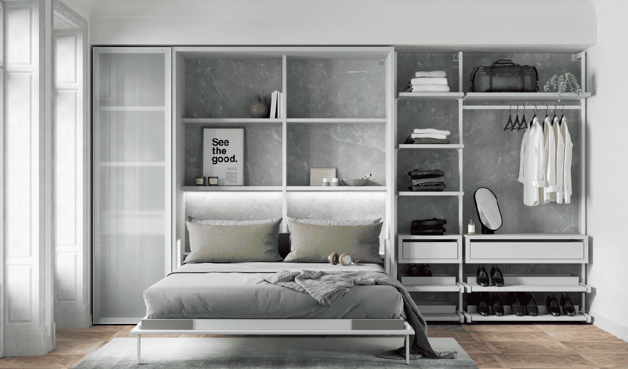 Las camas abatibles sin marco proponen un diseño innovador para sacar más partido de la habitación. En posición desplegada, ocupan un espacio más reducido. Mientras que al replegarlas permiten liberar mucho más espacio a su alrededor. Junto a ello, incluyen complementos interiores que te harán la vida mucho más cómoda.