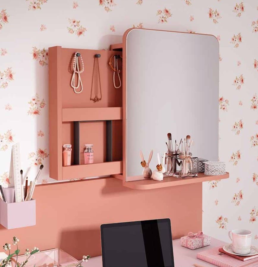 - Espejo de pared con guías y estante extraíble izquierdo.