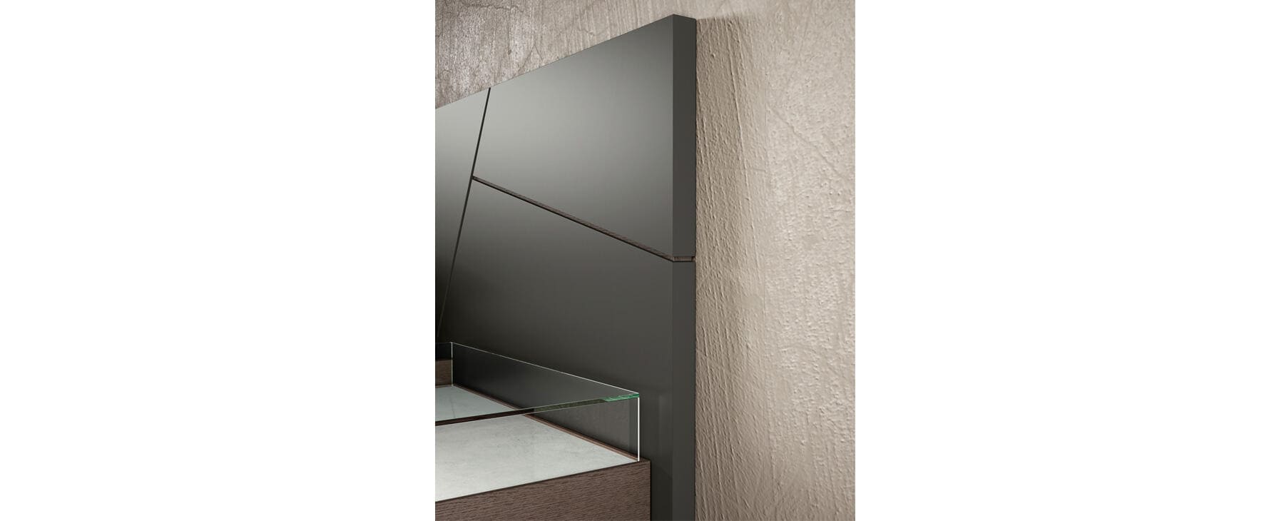 La combinación de acabados aporta un plus en la gama de dormitorios modernos, de líneas originales y llamativas.