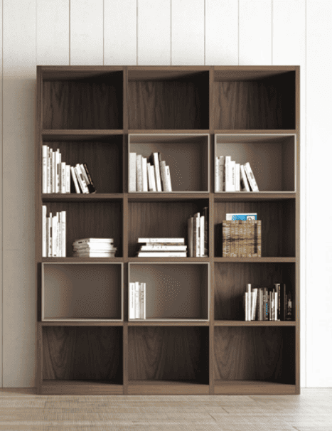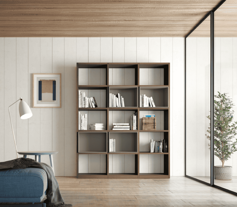 Librería modular compuesta por 3 módulos de 500 mm. Versión sin trasera y con trasera.