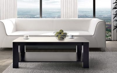 Mesa centro Mille PURE designs, fija con opción elevable, Tapa en porcelánico.