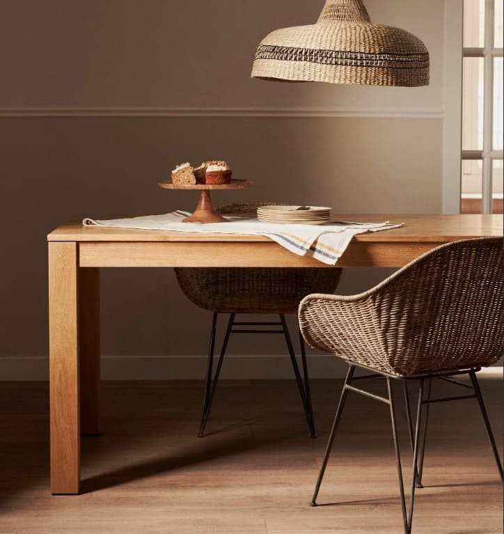 La colección Isbel tiene mesas de diferentes medidas para que se adapte a tu espacio. Eso sí, la madera de todas ellas proviene de bosques sostenibles y talas controladas