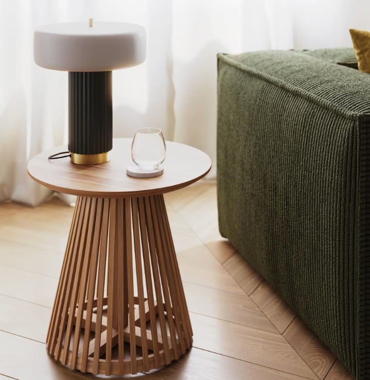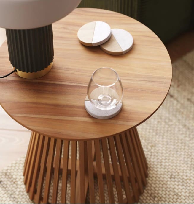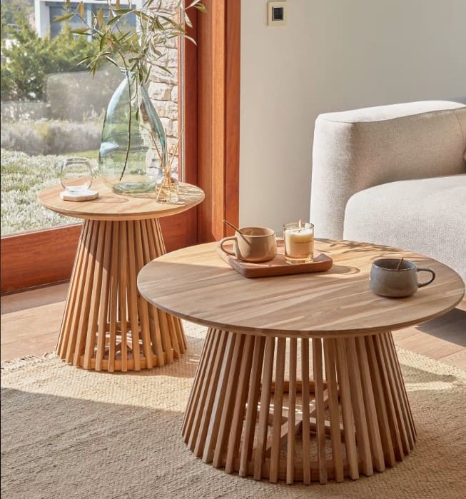 Esta es una pieza ecofriendly, ya que la madera con la que se ha hecho cada mesita proviene de bosques sostenibles y una tala controlada.