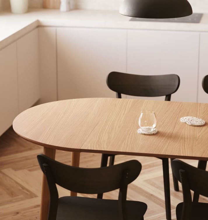 ¿Comedor pequeño y fiestas grandes? Tenemos a tu mejor aliada, la mesa extensible Oqui. De madera y DM, es ideal para conseguir más luminosidad y sensación de amplitud. Perfecta como pieza central de tu comedor.