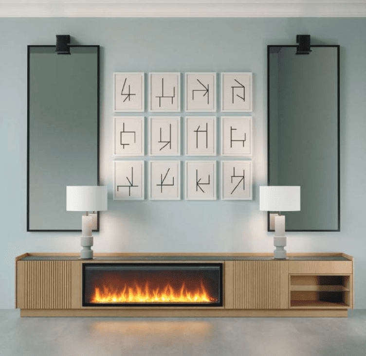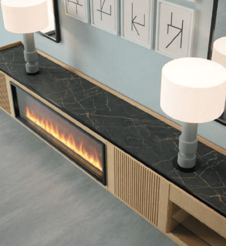 Mueble de TV para chimenea NIGHT 13. (También disponible para chimeneas NIGHT BOX 25 y GEO 50)