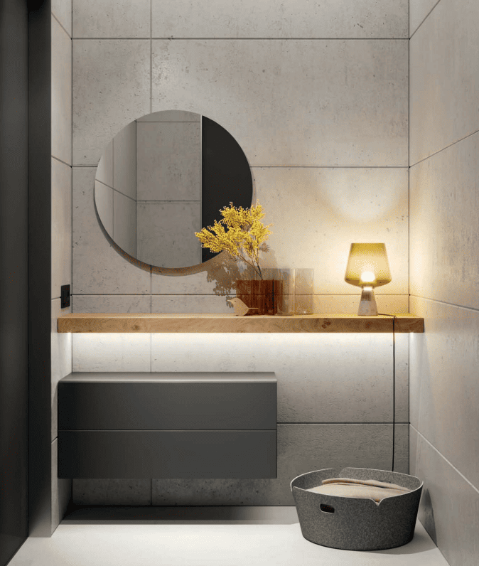 Estante flotante con luz. Incorpora mando para encenderla, regularla y apagarla.
