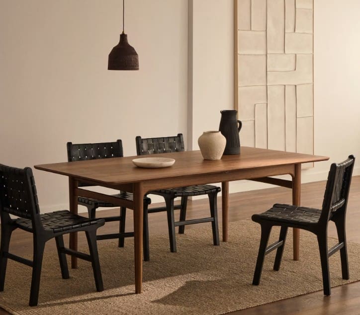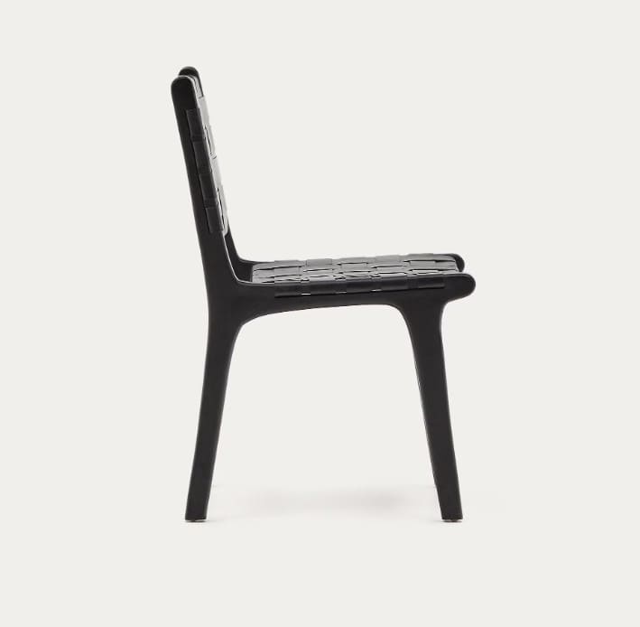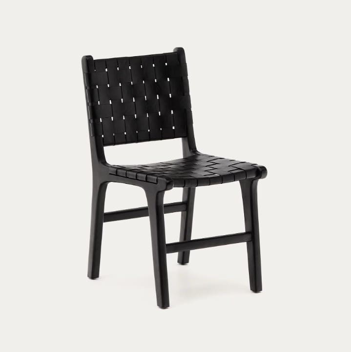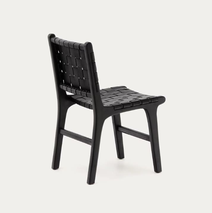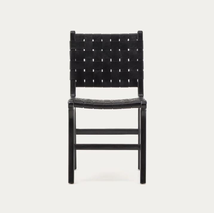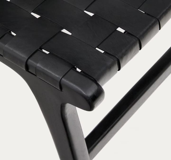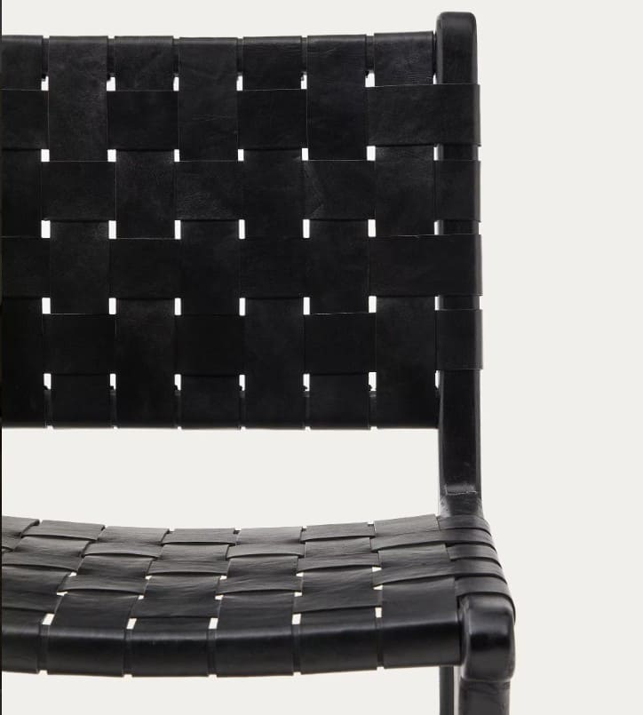 Para mayor autenticidad aún, cada una de las sillas Calixta está hecha artesanalmente, como el trenzado de las tiras de piel del asiento o el trato con la madera.