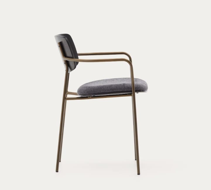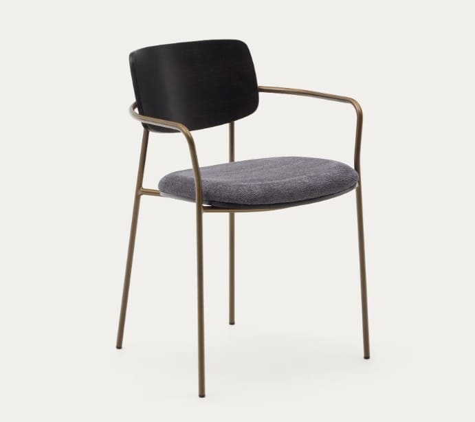 - Silla apilable con brazos de metal acabado pintado latón.