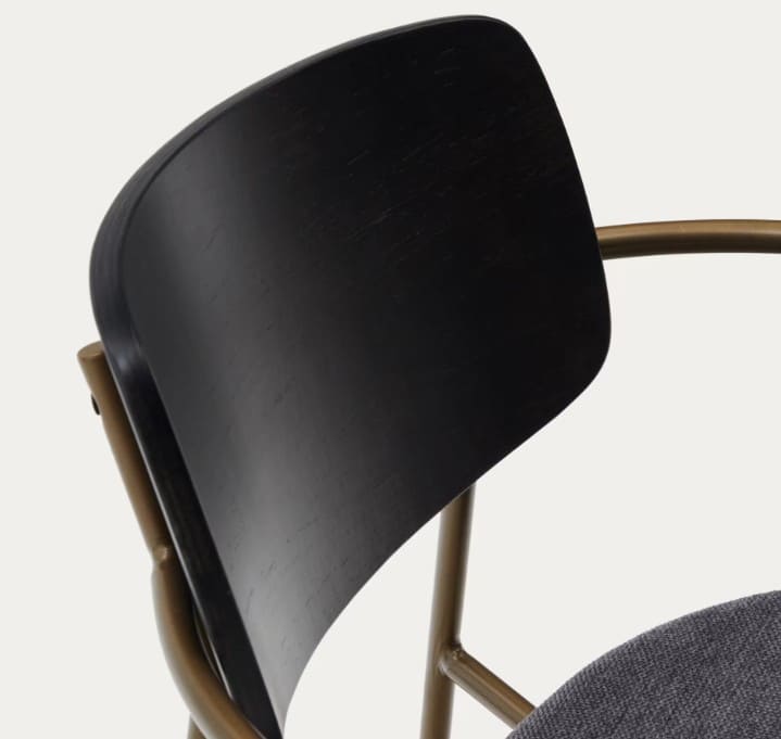 - Respaldo y base hechos de chapa de álamo con acabado tono oscuro.