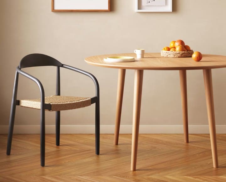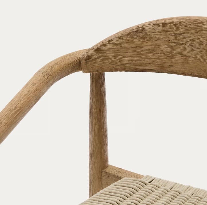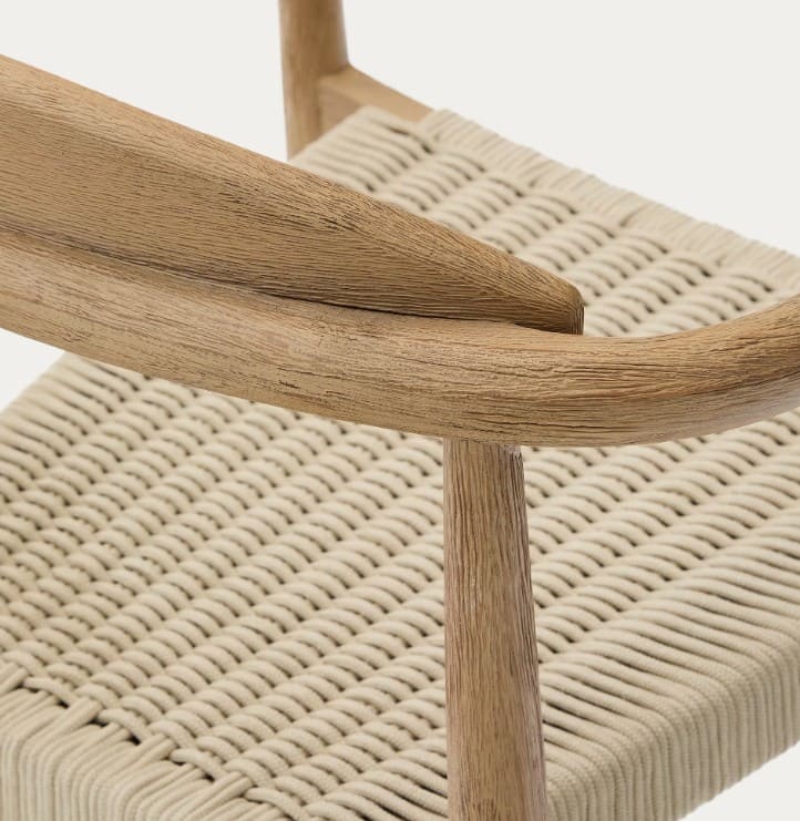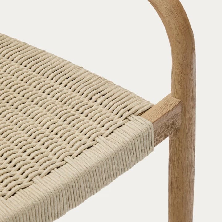 En la textura rústica de Nina, podrás apreciar los matices que ofrecen los materiales de alta calidad. Esta colección está confeccionada con madera maciza de acacia y acabado cepillado con una técnica artesanal. Por eso, cada pieza tiene tonalidades y vetas únicas. La cuerda del asiento está trenzada a mano y es resistente a los rayos UV.