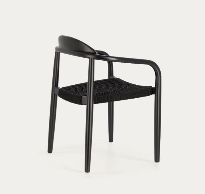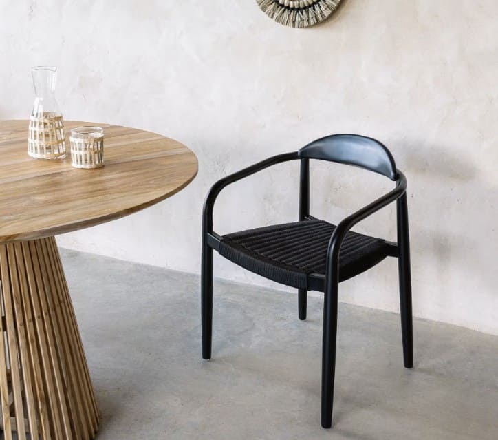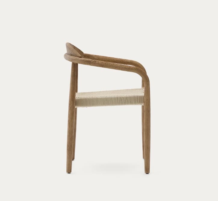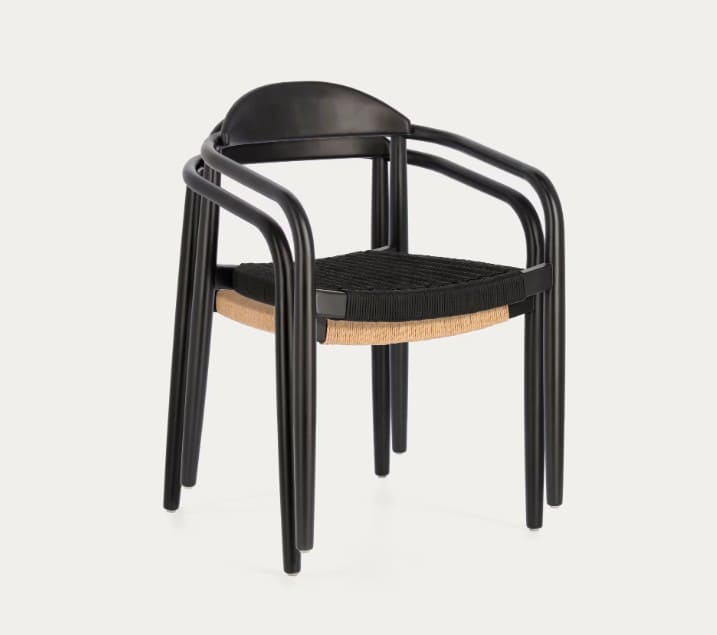- Silla apilable con reposabrazos hecha con materiales naturales y procesos artesanales.