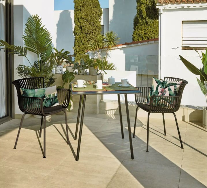 - Un diseño polivalente para poder disfrutar tanto en exteriores como interiores, ya que es resistente a la intemperie.