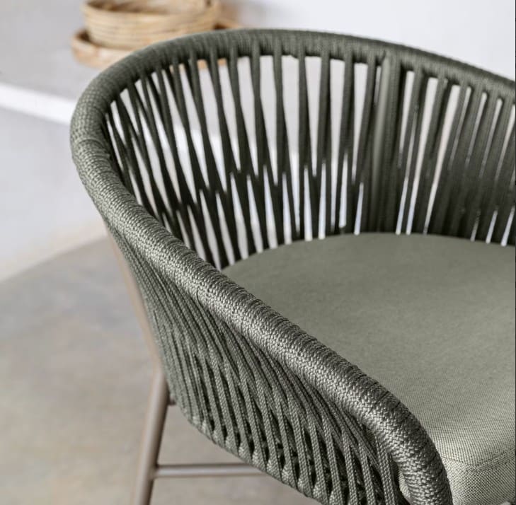 - Silla con asiento hecho con cuerda trenzada a mano resistente a los rayos UV.