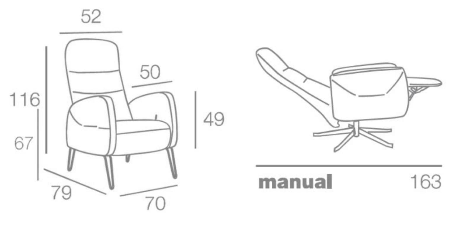 Sillón relax Beta, disponible en relax manual con sistema de empuje, pie giratorio opcional y cabezal reclinable.