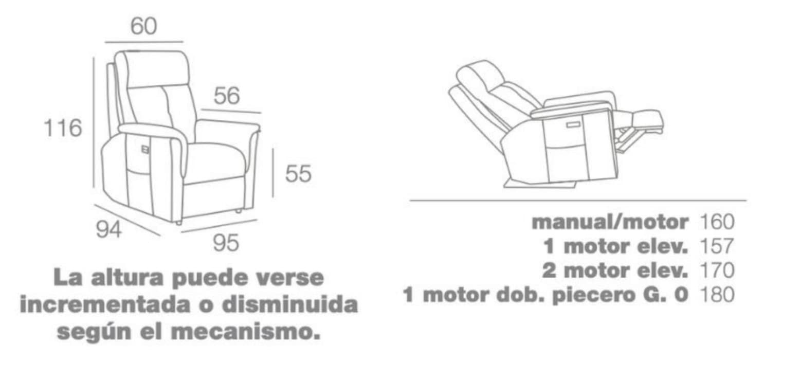 - 157cm x 95cm x 116cm (1 motor elevador).