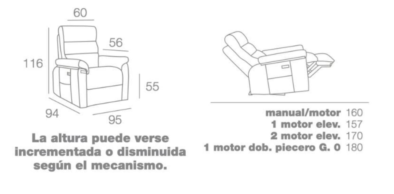 • 157cm x 95cm x 116cm (1 motor elevador).