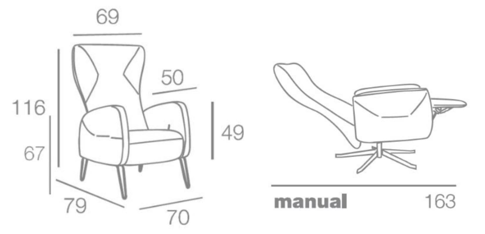 - 79cm x 70cm x 116cm.