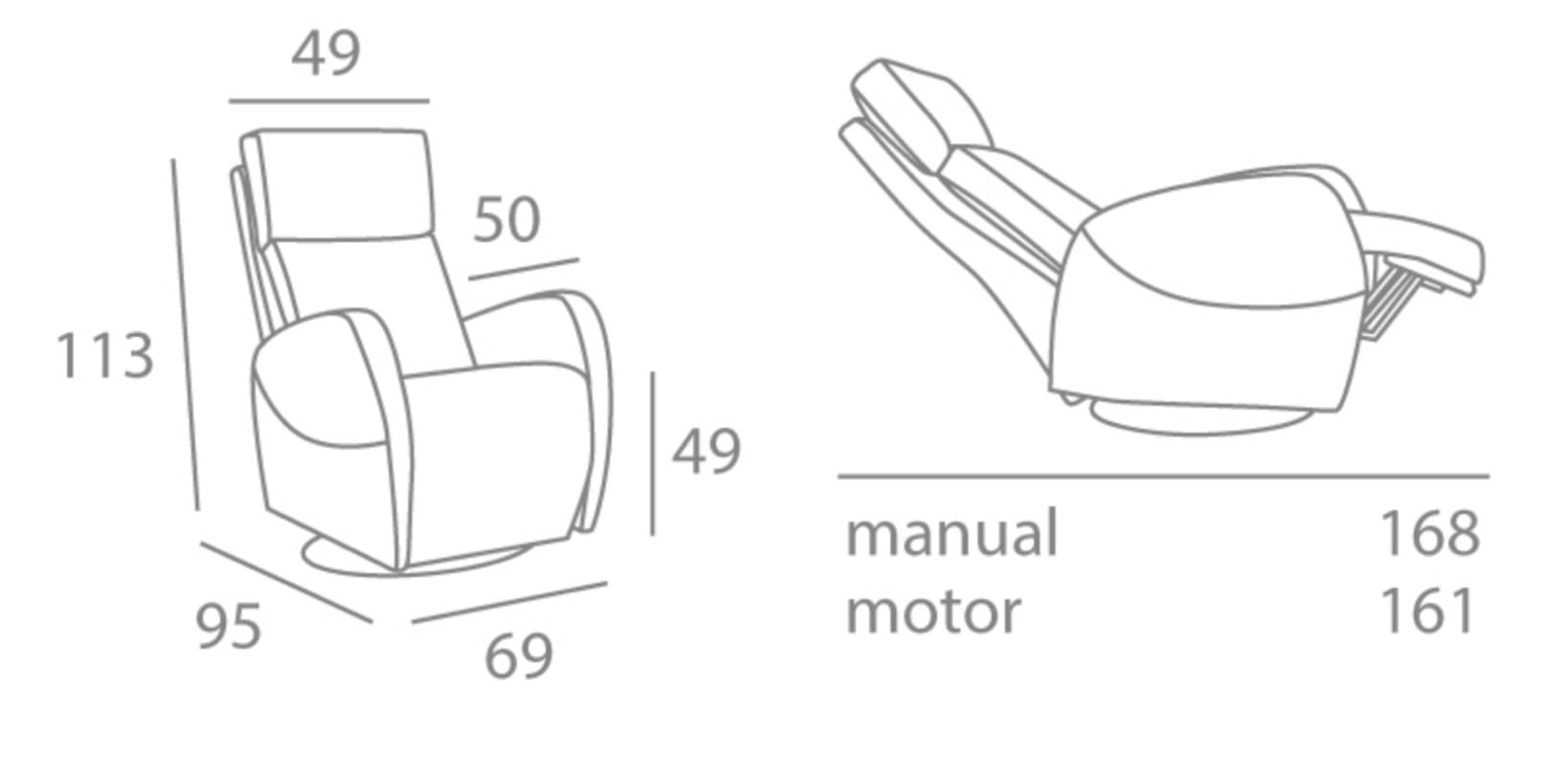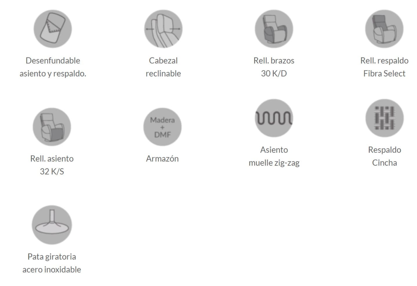 Sillón relax Lyon, disponible en relax manual con sistema de empuje y sistema relax con 1 motor, con botonera en el brazo. Sillón ideal para salón, totalmente desenfundable con pata giratoria.
