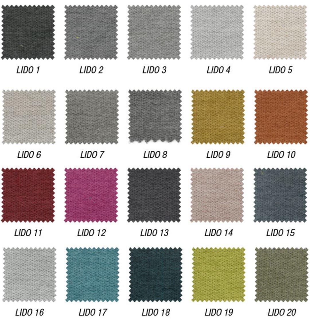 | Tapizado | Lido 1, Lido 2, Lido 3, Lido 4, Lido 5, Lido 6, Lido 7, Lido 8, Lido 9, Lido10, Lido 11, Lido 12, Lido 13, Lido 14, Lido 15, Lido 16, Lido 17, Lido 18, Lido 19, Lido 20 |