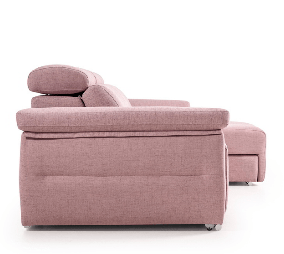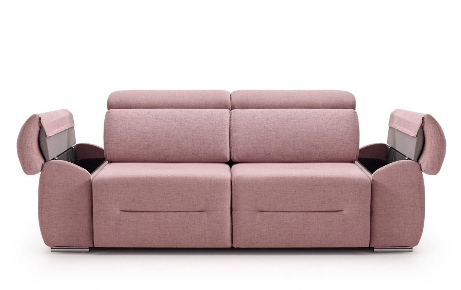 El sofá deslizante Milano, con ruedas al suelo, tiene un diseño elegante y es muy funcional. Los cabezales multiposición y su sentada extra confort aportan gran comodidad. Sus brazos curvos con cojín incorporado guardan un arcón de serie en su interior y también se pueden deslizar hacia adelante para acompañar la postura cuando sacamos los asientos; esto nos permite tumbarnos transversalmente y estar tan cómodos como en una cama.